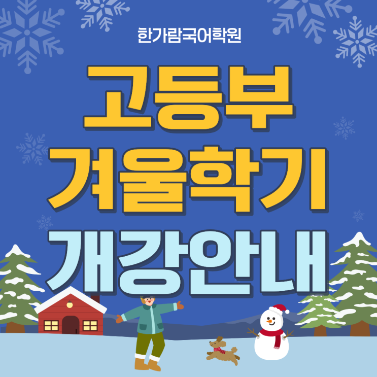 안녕하세요! 한가람국어학원입니다 오늘은 고등부 친구들의 알찬 겨울방학을 위해 한가람국어학원에서 준비한 겨울학기 고등부 수업 안내를 하고자 합니다~! Winter break begins 12월 18일 개강! 겨울방학은 중학생과 고등학생 모두에게 학업 성취도를 높일 수 있는 중요한 시기입니다. 이 시기를 활용하여 부족한 부분을 보완하고, 새로운 개념을 학습하는 것이 필요합니다. 특히, 고등학교 입학을 앞둔 중3 친구들에게는중학교 과정의 약점을 극복하면서 고등학교 국어 필수 개념을 학습하는 데 있어 겨울방학은 절호의 기회이고, 고2와 고3으로 진학하는 친구들에게는 내신과 수능 경쟁력을 키울 최고의 골든타임입니다. 정규수업 Official c....... <img src="https://blogthumb.pstatic.net/MjAyNTEyMDRfMTQx/MDAxNzY0ODM1Mzg1MDkw.EKrxQtQDZpicY4WoR7shiiZZsXJPrDaYgGnJwC4jvZEg.7icmU2K9iP1yyzGY0AdWx8h_nfP1cBhqu5091QTutG0g.PNG/1.png?type=s3" />