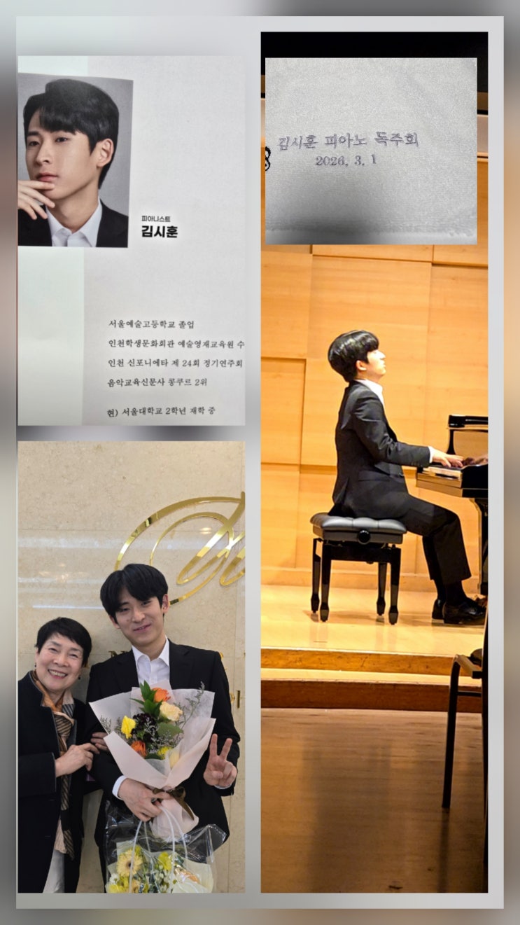 김시훈 피아노 독주회 (영아티스트 콘서트) 자랑스러운 제자 시훈이의 독주회가 2026.3.1일 우인아트홀에서 열렸습니다. <img src="https://blogthumb.pstatic.net/MjAyNjAzMDVfMTgz/MDAxNzcyNzA1ODA4NzU4.bC5eSCoFR7bWag3GbGTeNxyJWq_U8LlzTzruUaGq0WAg.DogwbjeMmW-Yt1aQk7IYc-EghNJC_sI6zsev35mDlDEg.JPEG/KakaoTalk_20260305_191247233.jpg?type=s3" />