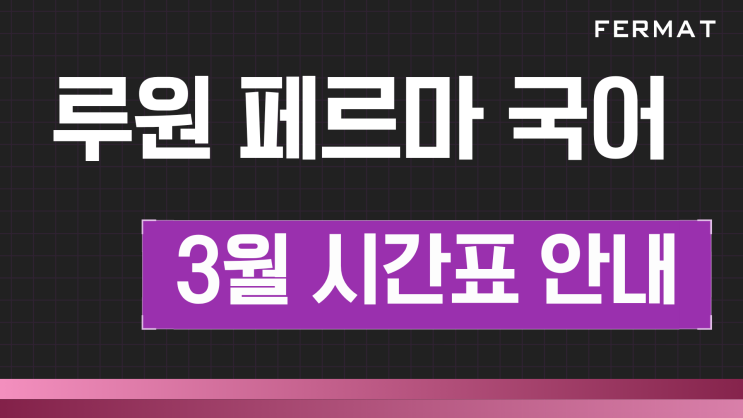 루원시티 국어학원,영어학원 페르마 3월 전체 시간표 안내 (중,고등 수업 운영)