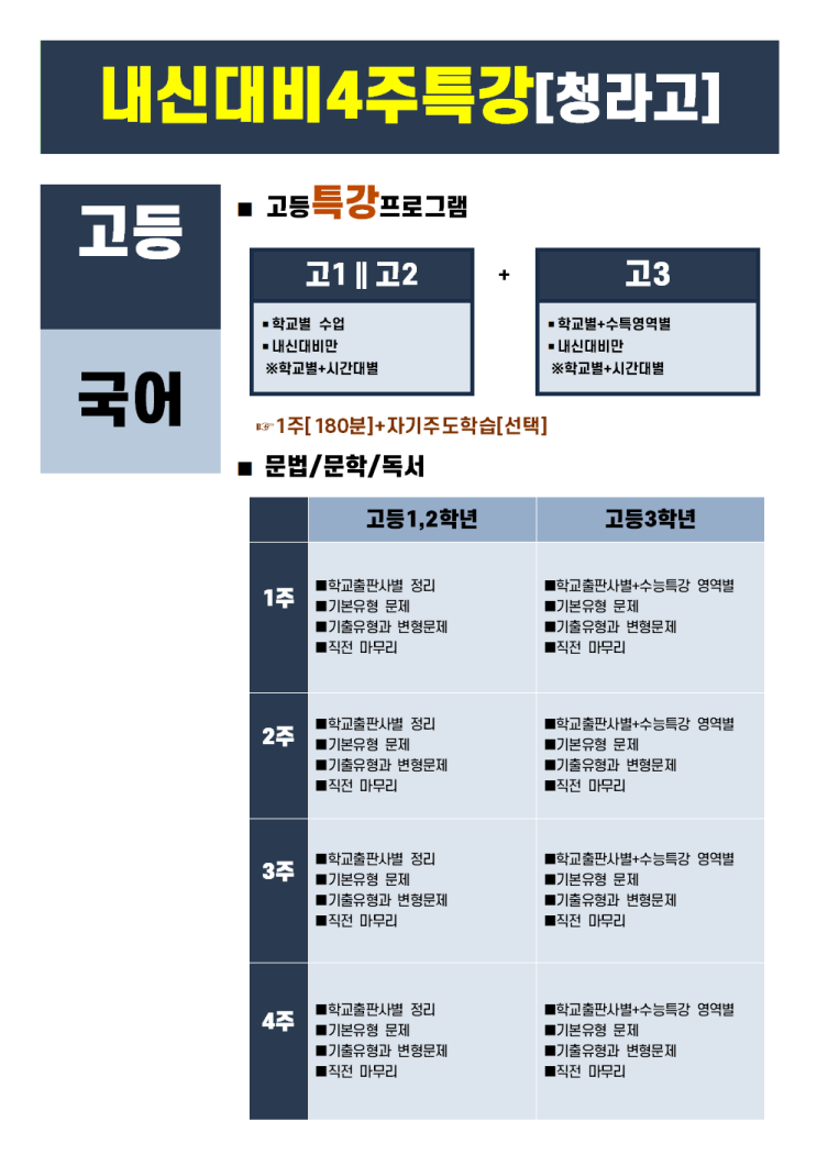 [검단국어학원] 고등부 국어 커리큘럼