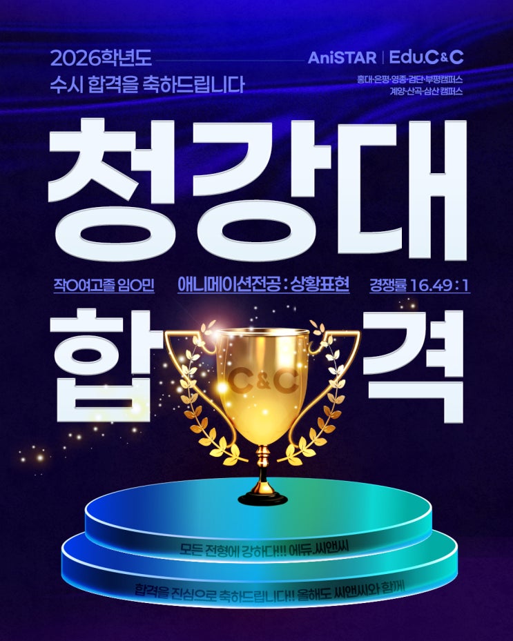 안녕하세요 여러분 ~ 12월이 성큼 다가왔습니다! 날씨도 으슬으슬 춥죠 ㅠㅠ 그 말인 즉슨, 수시 대학 입시기간이 끝나가는 시즌이 왔다는 것! 오늘은 많은 여러분들이 기다려왔을 합격자 소식을 전달드리려고 해요! 올해는 얼마나 놀라운 소식이 있을지, 함께 알아봅시다! 먼저 청강대 합격 소식입니다! 올해도 여러명이 높은 경쟁률을 뚫고 당당히 합격해주었어요! 중부대 합격자 소식입니다! 이 학생은 무려 장학생으로 합격했네요! 너무너무 축하드립니다! 예원예대 합격자 소식입니다! 무려 세명이나 동시 합격! 목원대 합격자 두명입니다! 애니메이션 학과는 경쟁률이 무려 20:1이네요..! 홍익대는 무려 4명 합격! 정말 놀라운 결과이지 않....... <img src="https://blogthumb.pstatic.net/MjAyNTExMjVfMjU5/MDAxNzY0MDUwNDA1NzQ0.fpd9TQAzhj5UOmrdVpsu-XlI-6WMWApF-EFJ9bu9nLsg.oZYx3-E00IykL6_mtslPLxZN0s7IoP02ChPEnIBEGS0g.JPEG/KakaoTalk_20251125_143613223.jpg?type=s3" />