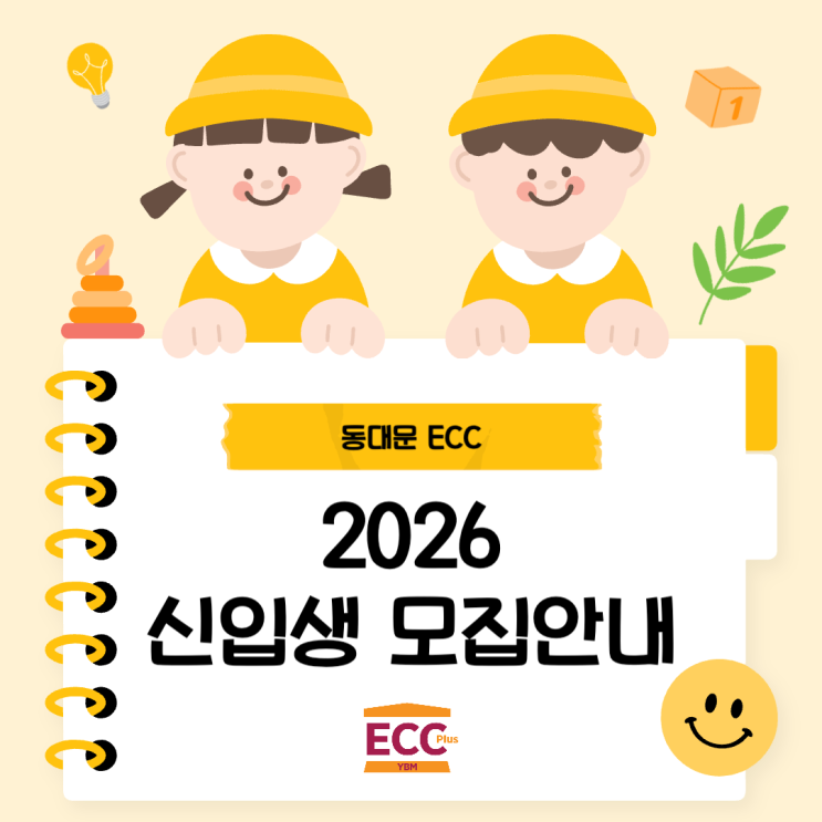 안녕하세요! 결과의 차이가 큰 영어 유아·초등 전문 동대문ECC입니다. 2026학년도, 우리 아이의 영어 실력에 놀라운 변화를 선사할 특별한 기회! 동대문 ECC가 유치부·초등부 2026학년도 신입생을 모집합니다! 체계적이고 균형 잡힌 ECC만의 교육 프로그램으로 아이들의 잠재력을 깨워주세요. 자세한 모집 안내는 아래를 확인해 주세요. 2026 신입생 모집 안내 오후 유치부 (화·목 / 21년생, 22년생) • 5세(22년생), 6세(21년생) 오후 시간을 활용한 효율적인 영어 노출 프로그램 놀이·스토리 기반 활동과 파닉스 기초 확립 정규 초등부 (월·수·금) • 초등 저학년부터 고학년까지 레벨별 수업 • 독해·문법·스피킹 등 균형 잡힌 커리....... <img src="https://blogthumb.pstatic.net/MjAyNTEyMDJfNTQg/MDAxNzY0NjY1NjY1MjA5.1J9QBgdP37I7Bq_v9wPTdeGtFxwhvtIuRBo916pEz98g.qUVbf0_Hngbr5eWTTrCSx6i5P2QfIbBtaNYd91qT8mIg.PNG/001.png?type=s3" />