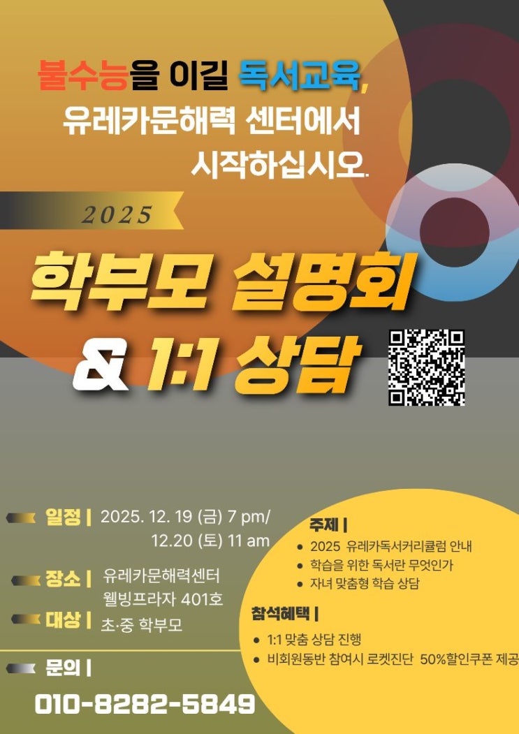 안녕하세요, 유레카리드아이 문해력센터입니다. 12월 학부모 설명회 개최 안내 “불수능에도 끄떡없는 문해력, 초등부터 준비하세요” 올해 수능이 ‘불수능’이라는 평가를 받으며 전 과목에서 변별력이 뚜렷하게 나타났습니다. 특히 국어 영역은 독서 문항의 난이도 상승이 두드러졌고, 이에 따라 문해력의 중요성이 다시금 강조되고 있습니다. 최근 수능 만점자는 한 인터뷰에서 이렇게 말했습니다. “결국 실력을 나눈 건 독서력이다.” “어릴 때부터 다양한 책을 꾸준히 읽으며 익힌 문해력과 독서지구력이 가장 큰 힘이 되었다.” 이 말처럼, 진짜 공부는 읽는 힘에서 출발합니다. 유레카리드아이는 다릅니다: 어휘부터 ‘문해....... <img src="https://blogthumb.pstatic.net/MjAyNTEyMDhfMjQw/MDAxNzY1MTY4Mjg5Njg1.MG-rXVsd7qdhh99JKh-f8cqMKT56qsiUKslT12Z00b4g.e9WdlgMCsN9ub42_2CqqYVtarUFpSDw6Ph1JiGFOGuYg.JPEG/%C7%D0%BA%CE%B8%F0%BC%B3%B8%ED%C8%B8-_%BA%B9%BB%E7%BA%BB_%283%29.jpg?type=s3" />