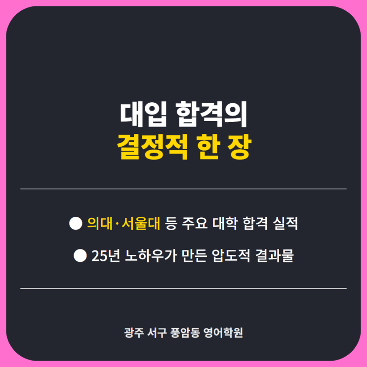 "우리 아이, 지금처럼만 하면 정말 목표하는 대학에 갈 수 있을까요?" 불이 꺼지지 않는 아이의 방을 보며 매일 밤 같은 고민을 하시는 부모님의 마음을 누구보다 잘 압니다. 특히 변화무쌍한 2026학년도 입시 환경 속에서 아이보다 부모님의 마음이 더 타들어 가실 텐데요. 1999년부터 25년 동안 광주 풍암동의 교육 자부심을 지켜온 롱맨어학원이 그 불안을 '확신'으로 바꿔드리겠습니다. [위기 진단] 중학교 성적표의 'A등급'이 고등 등급 절벽이 되는 이유 많은 분이 중학교 성적표의 'A'를 보며 안심하시지만, 광주 주요 중학교의 수학 A등급 비율은 40~50%에 달합니다. 하지만 고등학교 1등급은 단....... <img src="https://blogthumb.pstatic.net/MjAyNjAzMTFfMTc2/MDAxNzczMjI5ODM2MzUw.KnufdZrbKUI7dGu8iUg2QtxmZDI-vWDG0z9621M2p_Ug.x0OOmXensTAig5xwlbMUoFPOUH2sA3of91qGH1fAXo8g.PNG/slide_final_0.png?type=s3" />