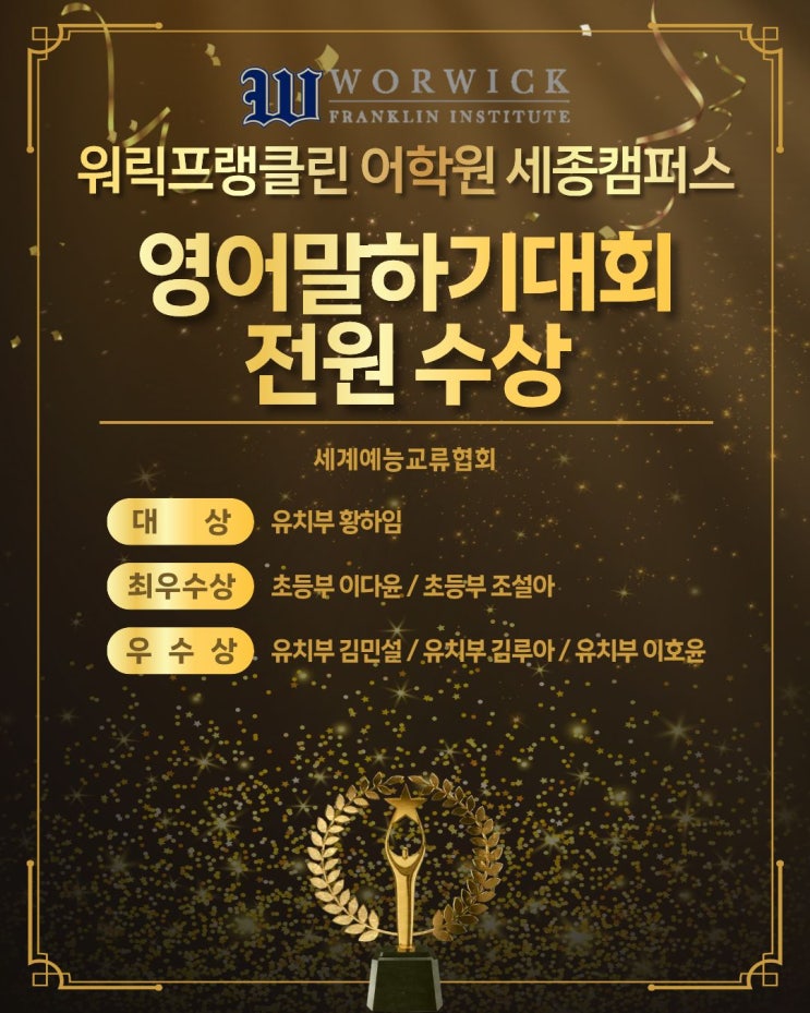 ✨ 세종 워릭프랭클린 어학원, 영어말하기대회 전원 수상
