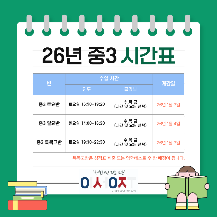 예비고1 통합과학 정규반 변경된 시간표 안내