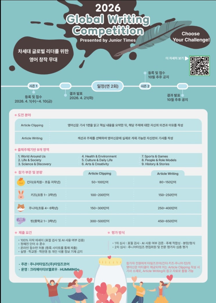 영통 영어학원 에이프릴|초등 영어 글쓰기 대회 Global Writing Competition 참가 신청 안내