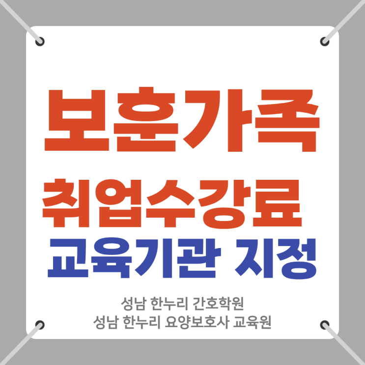 성남 국가유공자 수강료 지원 기관 등록했습니다!간호조무사 요양보호사 자격증도 70% 지원