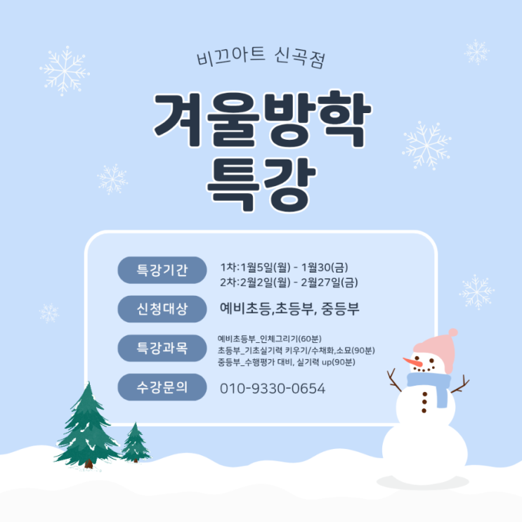 비끄아트 신곡점♡겨울방학특강 안내♡