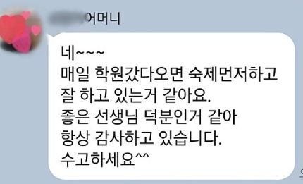 남들 다 어려워 하는 국어, 저는 이제 부담이 덜 해졌어요. 다른 공부도 더 잘되고 공부가 재밌어요! 중학생 시기에 우리 친구들을 보면, 아직 어리기도하지만, 더 이상 아이로만 볼 수는 없는 시기인 것 같아요. 공부에 대한 태도가 처음으로 만들어지기 시작하는 아주 중요한 시기에요. 요즘 상담을 하다 보면 이런 이야기를 정말 많이 들어요. “이제는 아이가 직접 공부하고 싶어 해요.” 그 마음, 저희는 아주 반갑게 맞이하고 있어요. 저희 중등부 수업은 다음과 같이 진행되고 있어요. -> 국어 수업 1시간 30분(1교시) + 독서논술 수업 1시간 30분(1교시) 국어 수업과 독서논술 수업을 병행함으로써 글을 읽고, 생각하고, 정리하는 힘....... <img src="https://blogthumb.pstatic.net/MjAyNjAxMDRfMTUw/MDAxNzY3NTAxMTA5NTUy.b8wniPkIOmuO2PjZyhU4N6O8uYCJk0Q8hfq15GGUvEYg.GTxvdc-iL1CZ4tzcIEu9odkuh5Gh7dbdJhLS_5l3LdMg.JPEG/%C1%A6%B8%F1%C0%BB_%C0%D4%B7%C2%C7%D8%C1%D6%BC%BC%BF%E4.jpg?type=s3" />