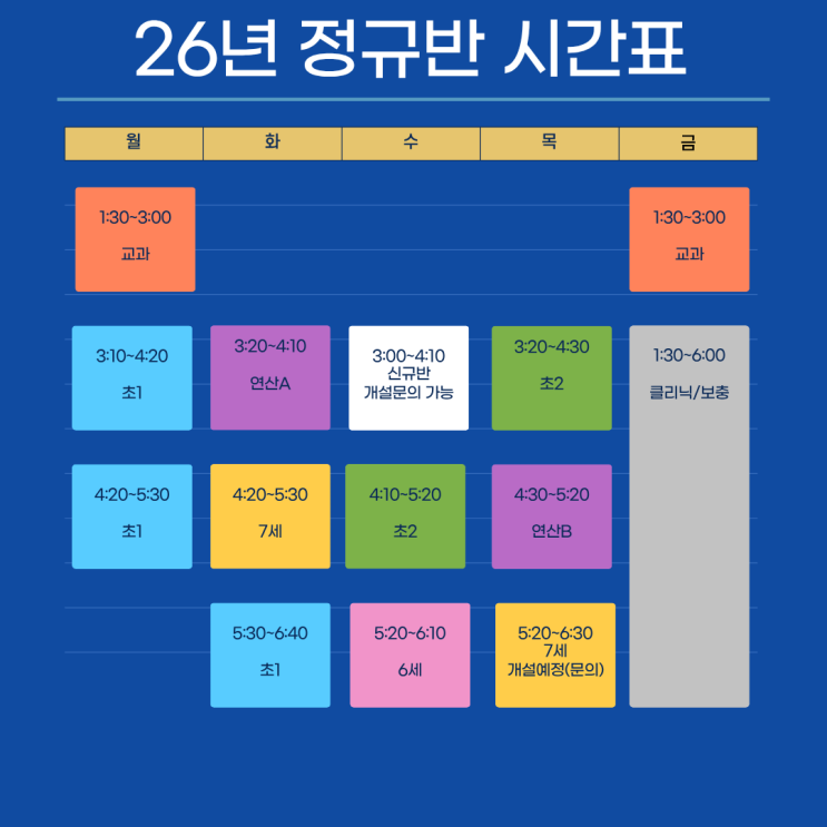 안녕하세요 박달동 초중등 영어 전문 제니영어학원입니다.^^ 제니영어는 그룹수업과 개별 맞춤 진도반 두가지 형태로 수업을 운영하고 있습니다. 또래 친구들과 함께 배우며 동기부여를 받을 수 있는 그룹수업, 학생의수준과 학습 속도에 맞춰 진행되는 개별진도 반으로 각 수업 방식의 강점을 극대화하여 학생들에게 가장 효율적인 학습이 이루어질 수 있도록 지도하고 있습니다. 학생의현재 영어 실력과 학습 성향을 고려하여 대면 상담 후 반 배정이 이루어집니다. 각반은 정원이 있어 티오가 제한적으므로 자세한 상담 및 반별 티오 문의는 010-4742-1695로 으로 연락 부탁드립니다. 영어시작반도 문의주세요^^ 대면상담 예약은 상담 신청서....... <img src="https://blogthumb.pstatic.net/MjAyNjAzMTRfMTE2/MDAxNzczNDY4OTkwMzYw.680YwfdQGm-AyHfiUUV-3mnQUruUgqY5ipCsYOWMKPcg.KE8lQgIir22YOFUn6lc1laBhwJdJeP2941-FNJvoXCog.PNG/900%A3%DF1773468612507.png?type=s3" />
