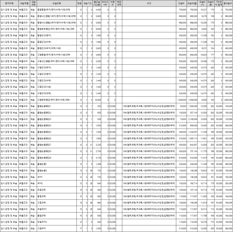 교습비 안내