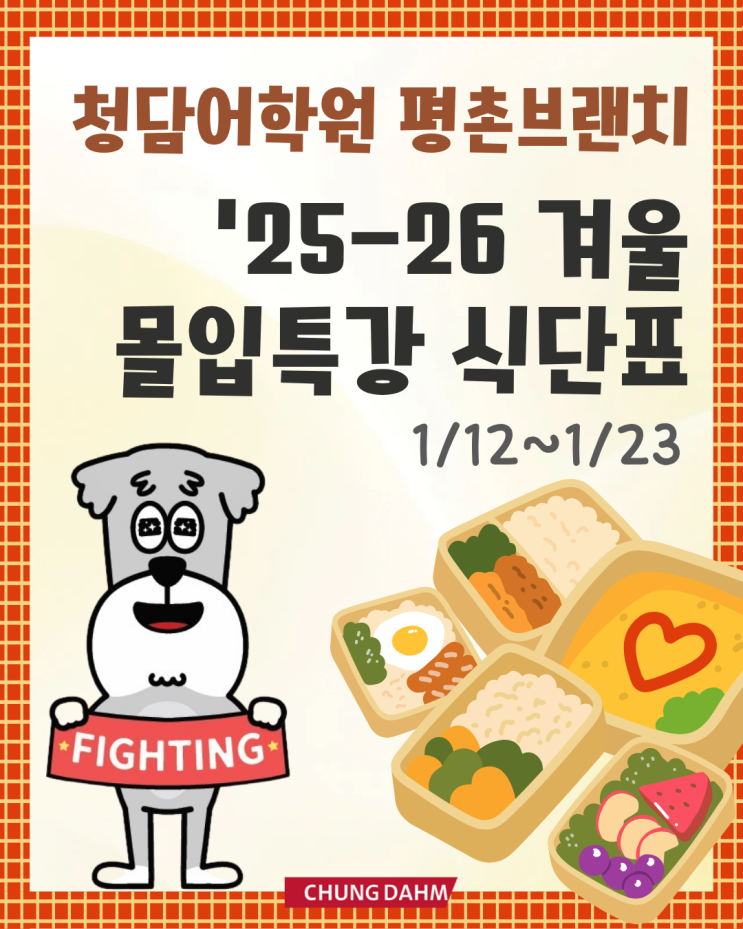 [청담어학원 평촌브랜치] '25-26 겨울 몰입특강 식단표 공개! (1/12~1/23)