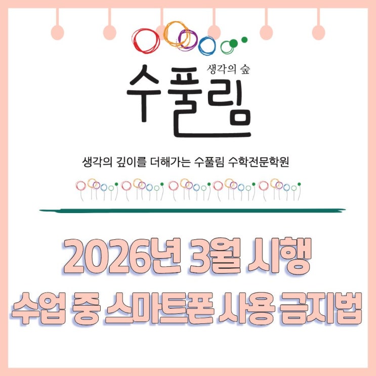 [평촌 수풀림수학학원] 2026년 '수업 중 스마트폰 금지법' == 평촌수학전문학원, 생각의숲수풀림수학, 평촌초등수학, 평촌중등수학, 평촌고등수학 ==