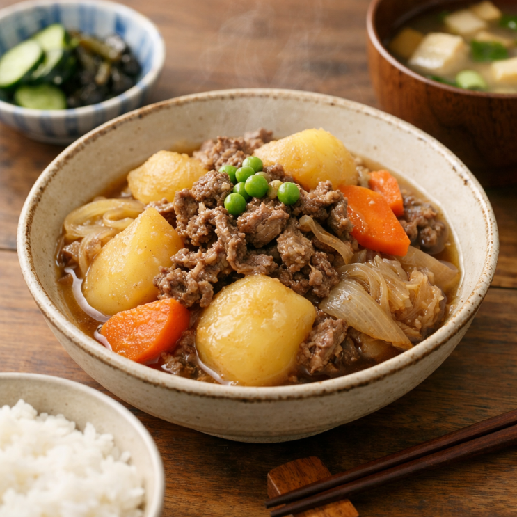 일본 가정식의 정석, 니쿠자가(肉じゃが) 집에서 만들어 먹는 일본식 소고기 감자조림 니쿠자가는 소고기(니쿠) + 감자(자가) 를 간장 베이스로 달콤하게 졸여 만든 일본 대표 가정식이에요. 화려한 요리는 아니지만, 일본 사람들에게는 엄마가 해주던 집밥, 마음 편해지는 음식으로 통하죠. 니쿠자가의 매력 짜지 않고 달짝지근한 간장 맛 포슬포슬하게 익은 감자 소고기와 양파에서 나오는 깊은 감칠맛 밥이랑 같이 먹으면 진짜 끝입니다 특히 날씨가 조금 쌀쌀할 때 먹으면 괜히 마음까지 따뜻해지는 요리예요. 재료 (2~3인분) 소고기(불고기용 또는 얇은 고기) 200g 감자 3개 양파 1개 당근 1/2개 (생략 가능) 양념 물 또는 다....... <img src="https://blogthumb.pstatic.net/MjAyNjAyMDNfMjA0/MDAxNzcwMTEyODU4MDE3.HSpjy3aOe-H4QA9jEMMg2zqbed5eAc14OAErK8O7SCMg.aa6AizfteLlfMqZKghuBNP6xU3sxCSXeD3RXYOALF-8g.PNG/ChatGPT_Image_2026%B3%E2_2%BF%F9_3%C0%CF_%BF%C0%C8%C4_07_00_40.png?type=s3" />