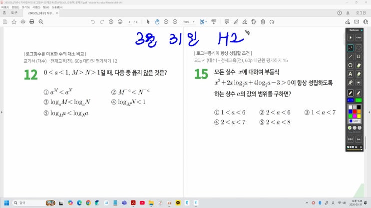명문수학학원,청북수학학원,청북고2수학[3월 31일]