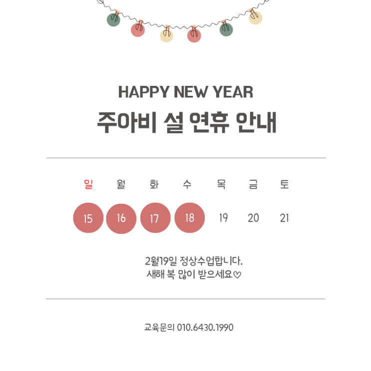 주아비발레 설연휴 안내문