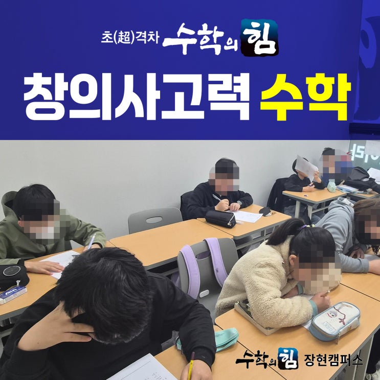 안녕하세요! 초(超)격차 수학의 완성, 수학의힘 장현캠퍼스입니다. 초등학생 자녀를 두신 학부모님들이라면 최근 교육 트렌드에서 **'사고력 수학'**이라는 단어를 정말 많이 들어보셨을 텐데요. "단순히 연산만 잘하면 되는 거 아닐까?", "우리 아이에게 사고력 수학이 꼭 필요할까?" 고민하시는 분들을 위해, 오늘 수학의힘 장현캠퍼스에서는 창의사고력 수학의 중요성과 저희만의 특별한 수업 현장을 소개해 드리려고 합니다. ❓ 창의사고력 수학, 왜 그렇게 중요할까요? 과거의 수학이 정해진 공식을 암기하고 빠르게 답을 찾아내는 '연산' 중심이었다면, 현재와 미래의 수학은 **'질문하....... <img src="https://blogthumb.pstatic.net/MjAyNjA0MDFfMTAx/MDAxNzc1MDIwODE2ODE5.-EcT5kGcZEz6to__hvtPYdMMkQivNXGCuu1zbluUgx0g.3U3O4qg-4aKpAbSUs0FRHDY5P5YjGo0DyAY88Toc2x0g.JPEG/%C3%A2%C0%C7%BB%E7%B0%ED%B7%C2_%BA%B9%BB%E7.jpg?type=s3" />