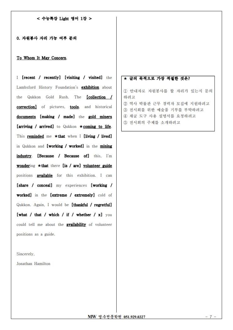 명륜동 영어 MW (부산 중앙여고 1학년 부교재 내신대비) EBS 수능특강 Light 영어 1강 자료
