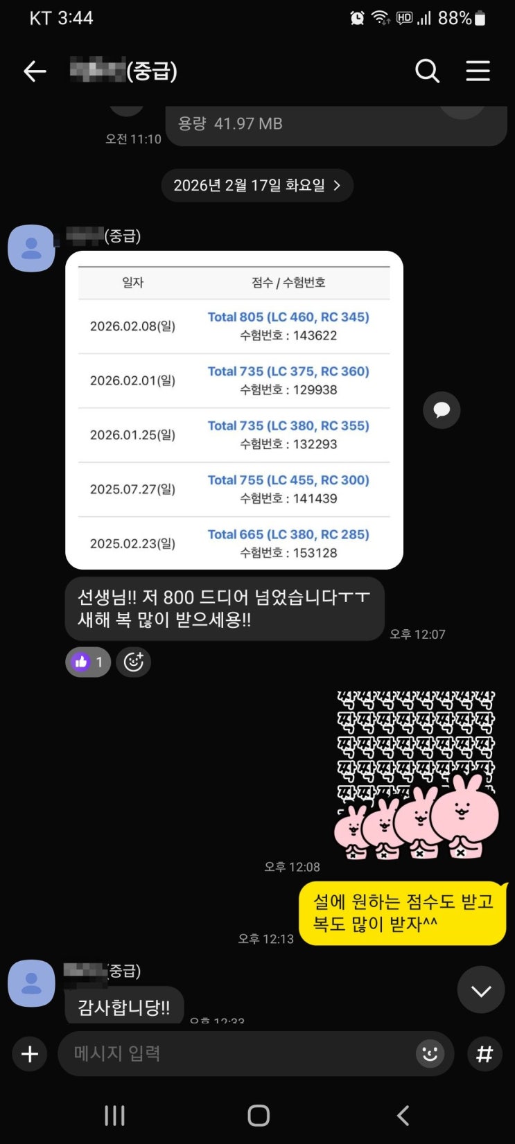 [울산 토익학원 앤토익] 오전 중급반 간호학과 학생 805점 달성!
