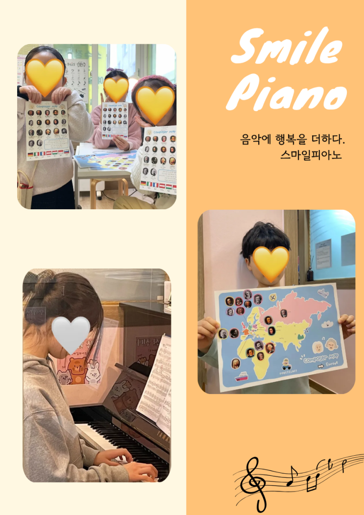 안녕하세요, 목동초 스마일피아노음악교습소입니다. 매 시간 아이들에게 가장 좋은 수업을 전하고자 이 달에는 음악을 보다 깊이 이해하고 표현할 수 있도록 손의 움직임에만 집중하는 연주가 아닌 음의 사용과 호흡을 함께 인식하며 소리의 깊이와 표현의 폭을 넓히는데 중점을 두고 수업했습니다. 또한 매월 진행되는 스마일피아노 이달의 음악가 수업과 예술융합특강을 통해 여러 음악가들을 지도 위에 직접 배치하며, 음악가들의 국가와 대표곡을 직관적으로 살펴보았습니다. 아이들은 지도 위에서 같은 나라의 음악가들을 만나기도 하고, 가발을 써서 여성 작곡가로 알고 있었던 음악가를 남성 작곡가로 다시 배우기도 하고:) 여러 음악가들....... <img src="https://blogthumb.pstatic.net/MjAyNjAxMjZfMjEy/MDAxNzY5Mzk1MzIzNjc1.gy_6W1q38YgCYDUFDlHjK-gpdQvccQB8rhB6TDHOqlog.RiME4aC_f0DumyfSvBYbaq5prQF3_JphYf0z_WRQq5cg.PNG/1.png?type=s3" />