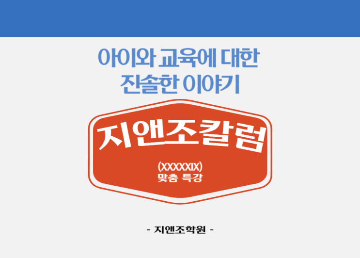 안녕하세요! 지앤조학원입니다. 지앤조칼럼의 쉰 아홉 번째 주제는 [XXXXXIX. 맞춤 특강]입니다. 지앤조학원의 진솔한 입장을 함께 나눠보시죠! 학기가 끝나면 방학이 시작됩니다. 방학을 맞이하여 학원가에선 방학 특강을 진행하고 있죠. 학기마다, 해마다 돌아오는 방학을 맞이하여 학원에서는 어떤 특강을 개설하여 아이들에게 도움을 줄 수 있을까 고민하곤 합니다. 교과과정 외 다른 내용을 접할 수 있도록 특강을 개설하는 것도 좋지만 결과적으로 학원에선 아이의 성적 향상을 위한 특강을 개설할 수밖에 없더군요. 그렇기 때문에 특강 과목은 제한적이라 하겠습니다. 어느 학원에서는 방학 때마다 특강의 주제를 '문법'으로 정....... <img src="https://blogthumb.pstatic.net/MjAyNTEyMTBfMjU1/MDAxNzY1MzQzMDg5MTE3.ozXS2VCk0gg9qSOy6g4SmaL9taunn_iaAf2nvfIsewYg.6PZFfrbtYhxxorXcUc3qy086_b3ATE4yloN18kf8VPkg.PNG/%C1%A6%B8%F1%C0%BB_%C0%D4%B7%C2%C7%D8%C1%D6%BC%BC%BF%E4_-060.png?type=s3" />