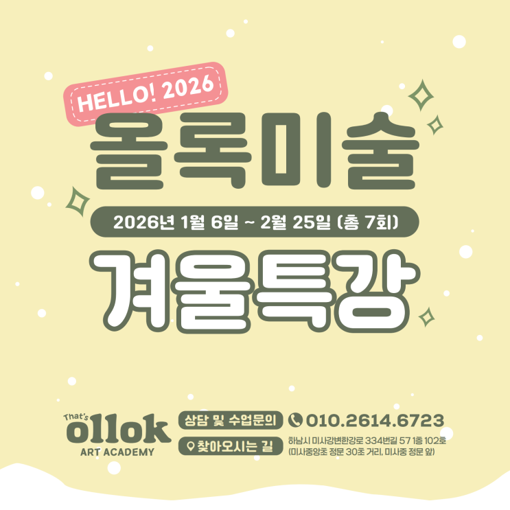 <하남미사미술학원 겨울방학 특강>2026년도 올록미술 겨울방학 특강 안내♥
