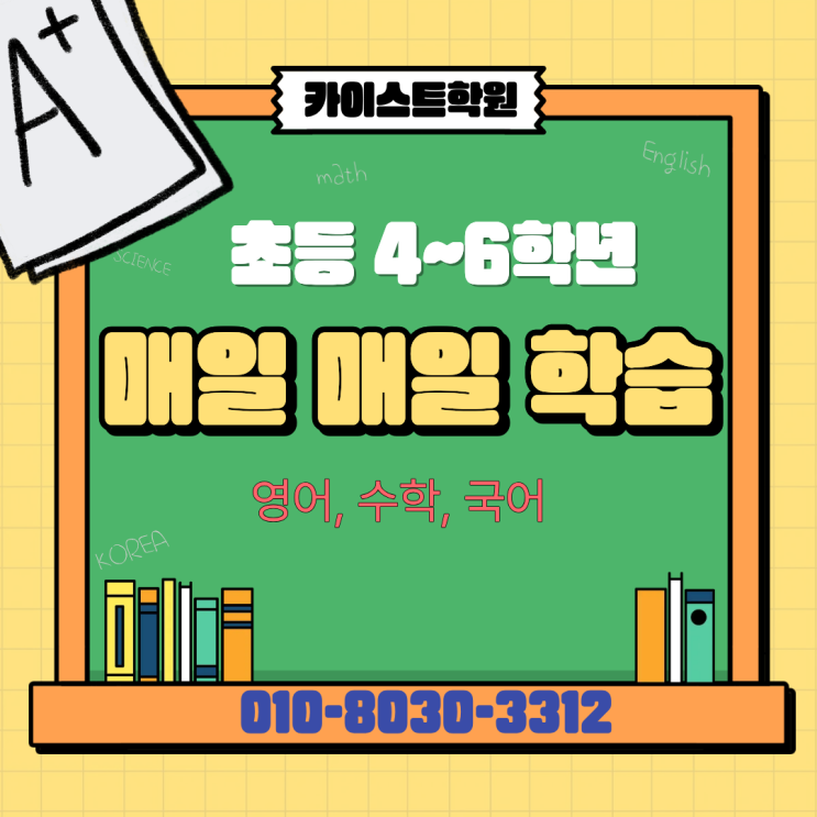 카이스트학원 초등 4~6학년 매일반 모집 *영어 · 수학 · 국어* | 개인별 진단 기반 1:1 맞춤 관리 프로그램