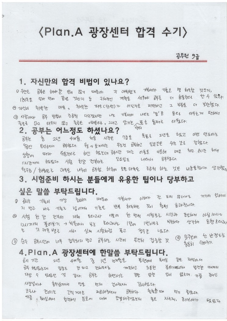 안녕하세요 플랜에이광장센터입니다. 21년도부터 하나 둘 모아 센터에만 개시했던 합격수기를 블로그 한켠에 만들어보려고 합니다 첫번째 합격수기는 다음달 시험을 앞둔 공무원9급 합격수기입니다 매일 일찍나와 성실하게 준비하셨던 모습이 기억되는 회원님입니다 지금은 현장에서 일하고계실 회원님, 앞날에 좋은일만 가득하길 응원합니다 ♡ <img src="https://blogthumb.pstatic.net/MjAyNjAzMjZfODAg/MDAxNzc0NTMxOTA3MTE4.njSPhEN--tHy5m1YBmX2nJtSt7jGGlx3ZEJk9LId4P4g.dBRuIt9MJsbt2lyVieqOcnoYWofNJ3chEs0uv1bmhvcg.JPEG/9%B1%DE%B0%F8%B9%AB%BF%F8.jpg?type=s3" />