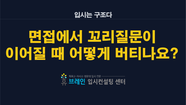 면접에서 진짜 점수는 ‘첫 답’보다 꼬리질문 대응에서 갈립니다. 결론부터 말하면, 꼬리질문은 공격이 아니라 검증입니다. 준비된 문장을 외운 학생은 두 번째 질문에서 무너지고, 과정을 가진 학생은 오히려 점수가 올라갑니다. 버티는 핵심은 “모름을 숨기기”가 아니라, 가정→근거→한계→다음 검증으로 사고를 보여주는 것입니다. 꼬리질문 대응 4단계 질문 재정의: “지금 묻는 핵심은 ○○ 조건/변수 맞나요?” 근거 제시: 학생부 문장/자료/지표 1개 한계 인정: “다만 △△는 통제가 부족했습니다” 확장 제안: “그래서 다음엔 □□로 검증하겠습니다” 무너지는 답변 패턴 감정적으로 방어 / 결론만 반복 / 근거 없이 “그렇습니다....... <img src="https://blogthumb.pstatic.net/MjAyNjAyMjFfMjEz/MDAxNzcxNjMxNjIzNjg5.HSEcFY2nt7ji6obOX2fJPiNwBXec0K5L9lxT6di9UJAg.jGDBWyETs9E8qT0hAaqGjUlUHdflDsWK3pzUT799dKMg.PNG/%BA%ED%B7%CE%B1%D7_%BD%E6%B3%D7%C0%CF.png?type=s3" />
