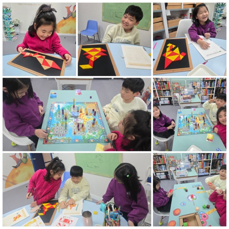 플레이팩토 칠교로 변과 꼭짓점에 대해 다시 한 번 알아보고 길이가 같은 변끼리 꼬리잇기~^^ 서로 서로 만들어진 모양에 이름을 붙여가며 서로 서로 닮았는지 "어디~어디~?" 보드게임도 이젠 긴 게임도 하나씩 해보는데 40분 넘는 시간을 집중해서 목표를 잊지않고 해나가는 우리 1학년들~^^♡ <img src="https://blogthumb.pstatic.net/MjAyNjAxMDhfMTU3/MDAxNzY3ODA3NTM1MDQw.stTXKNgE2y3Aecl9SQ7nCU-UIAO-ikBwFUpts4aRGGEg.Et-laIHWPJsOxBY_jD3LQLsaAvFaWlhFWCfgKY_DPTEg.JPEG/900%A3%DF1767794461570.jpg?type=s3" />
