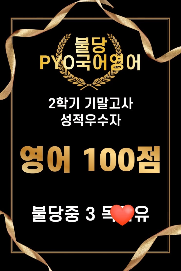 기말고사 성적 공개! 또 한 번 증명된 실력! 불당중, 월봉중, 쌍용중 학생들의 기말고사 성적이 공개되었습니다! 이번에도 우리 학원 친구들이 100점과 90점대 고득점으로 멋지게 마무리했어요 041-548-8110 특히, 처음엔 영어가 어렵다던 친구들이 우리 학원의 체계적인 커리큘럼과 집중 관리 프로그램을 꾸준히 따라오며 놀라운 성장을 보여줬습니다 우리 학원의 강점 • 자체 제작 교재로 학교별 맞춤 대비 • 시험 전 예상문제 & 기출 분석 완벽 반영 • 직전 보강 + 시험기간 연장수업으로 실전 완성 이번에도 결과가 증명합니다. “꾸준함과 시스템이 만나면, 성적은 반드시 오른다!” 천안 불당동 영어학원 월봉중 기말....... <img src="https://blogthumb.pstatic.net/MjAyNTExMTNfMjI0/MDAxNzYzMDAyNzY1NTI4.fmbspEhTo142VjXyc_MfeR94cUQ5MdMs5U4-dUvOr-sg.T4C9V8StjaeoHfhRzFF_i6khnDORA97N6By9o5GqEoYg.JPEG/output%A3%DF3910302475.jpg?type=s3" />