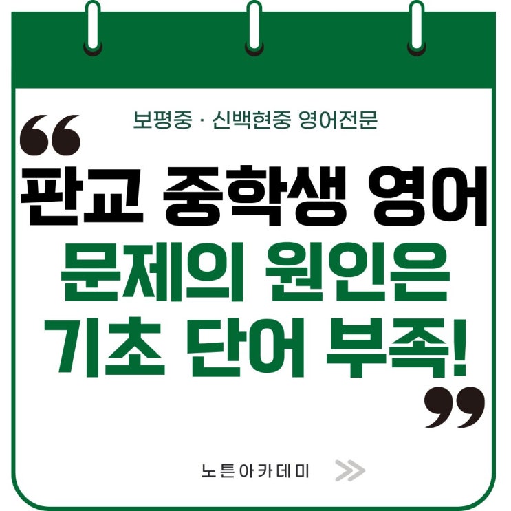 판교 중학생 영어 상담을 진행하다 보면 가장 많이 듣는 질문이 있습니다. “문법 내용은 이제 조금 알겠는데 문장을 이해하지 못해서 문제를 못 풀겠어요.” “단어를 미리 공부해와도 독해 지문을 읽을 때 모르는 단어가 많이 나와서 중간에 막혀요.” "단어를 보면 뜻은 아는데 영작할 때 스펠링이 기억이 안 나요.” 이런 경우 대부분의 원인은 단순합니다. 바로 중학생 영어 단어 부족입니다. 판교 중등 영어 수업을 오래 지도하면서 느낀 점은 중학생 영어 실력 향상의 첫번째 관문은 중학생 영어 단어 관리에서 결정된다는 사실입니다. 그래서 노튼아카데미 판교 중등 영어학원에서는 중등부 각 레벨별로 짜여진 커리큘럼과 교재별 단....... <img src="https://blogthumb.pstatic.net/MjAyNjAzMjZfMjg2/MDAxNzc0NTE2MzUyNTYx.Wg5HTPTr6VT7TQJhcvlluwwATErO64t6qYy7UTPSHBIg.qmppN4mEnk1lPtQQyNvsj5Jo5VqyCB-ewnMkMRKdawgg.JPEG/%C6%C7%B1%B3_%C1%DF%B5%EE_%BF%B5%BE%EE%C7%D0%BF%F8_%C6%C7%B1%B3_%C1%DF%C7%D0%BB%FD_%BF%B5%BE%EE_%BA%B8%C6%F2%C1%DF_%BD%C5%B9%E9%C7%F6%C1%DF_%B3%EB%C6%B0%BE%C6%C4%AB%B5%A5%B9%CC.jpg?type=s3" />