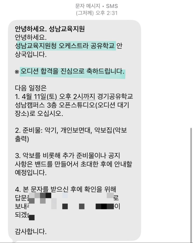 2026년도 성남교육지원청 오케스트라 합격