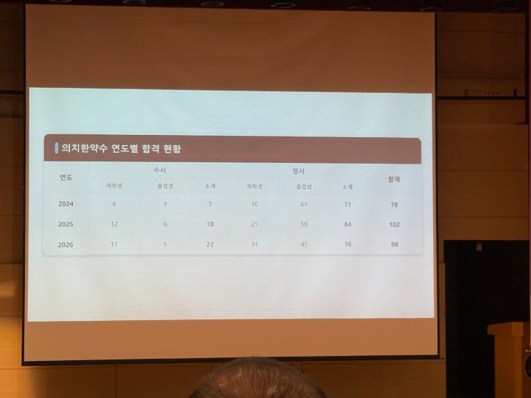 중동고 2026학년도 대입 실적입니다. 올해 열린 중동고의 학부모교실에서 공객된 자료입니다. 의치한약수 연도별 합격 현황 서울대 연도별 합격 현황 주요대학 연도별 합격 현황 <img src="https://blogthumb.pstatic.net/MjAyNjAzMjhfMjI1/MDAxNzc0Njc1NDExMjQ2.mniWKL1vwpF_4C4i-zARBptICpod1qQ0ooY3l62xGv8g.u_2oy8tb9zrBOAyozPbtaPAilgA_WPBIePArAyylmC4g.JPEG/KakaoTalk_20260316_173216234_04.jpg?type=s3" />