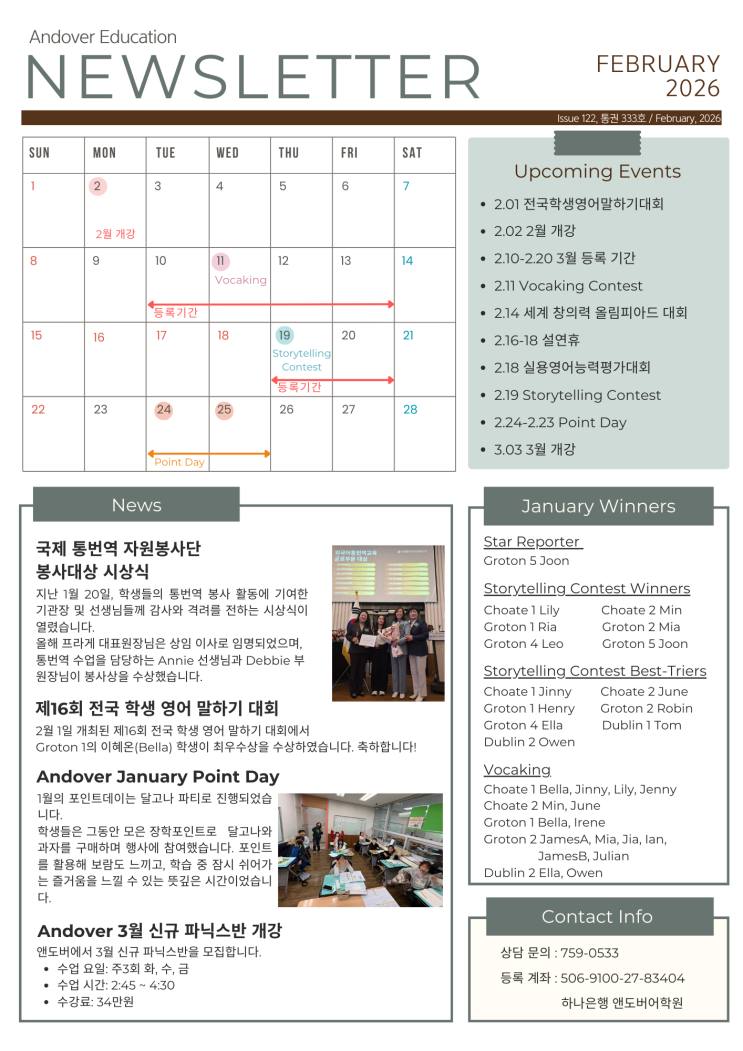 2026년 2월 앤도버 뉴스레터