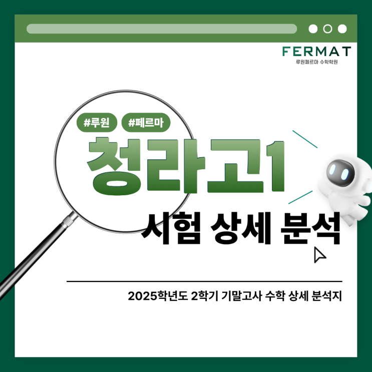 시험이 끝난 뒤 청라고 1학년 학생들 사이에서 가장 먼저 나온 반응은 “생각보다 시간이 너무 부족했다”는 말이었습니다. 문제가 많아서라기보다 한 문항을 해결하기 위해 요구되는 사고 과정이 길었기 때문입니다. 이번 기말고사 역시 청라고 수학 시험의 성격을 그대로 보여준 시험이었습니다. 출제 범위와 문항 구성으로 본 시험의 성격 이번 시험은 총 22문항(객관식 16문항, 서답형 6문항) 구성으로 시험 범위는 명제 ~ 무리함수까지였습니다. 표면적으로 보면 범위 자체가 과도하게 넓지는 않았습니다. 하지만 실제 체감 난이도는 상당히 높았던 시험입니다. 그 이유는 단순합니다. 교과서 문항만으로 해결되는 문제 비중이 낮고 올림포....... <img src="https://blogthumb.pstatic.net/MjAyNTEyMDlfMTI5/MDAxNzY1MjgwMzg4MTk2._1abvwsVbRNwJBwNDV9nmaYNwJuPl-eGel9UJ5bhrvsg.EpPH_LyPHAKkavdDUXDuOxFBr1jQH_iK-rzVc5M7zc8g.PNG/1.png?type=s3" />