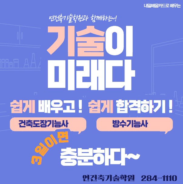 그래...나도 시작해볼까! 전주 건축도장학원. 전주 방수기능사학원