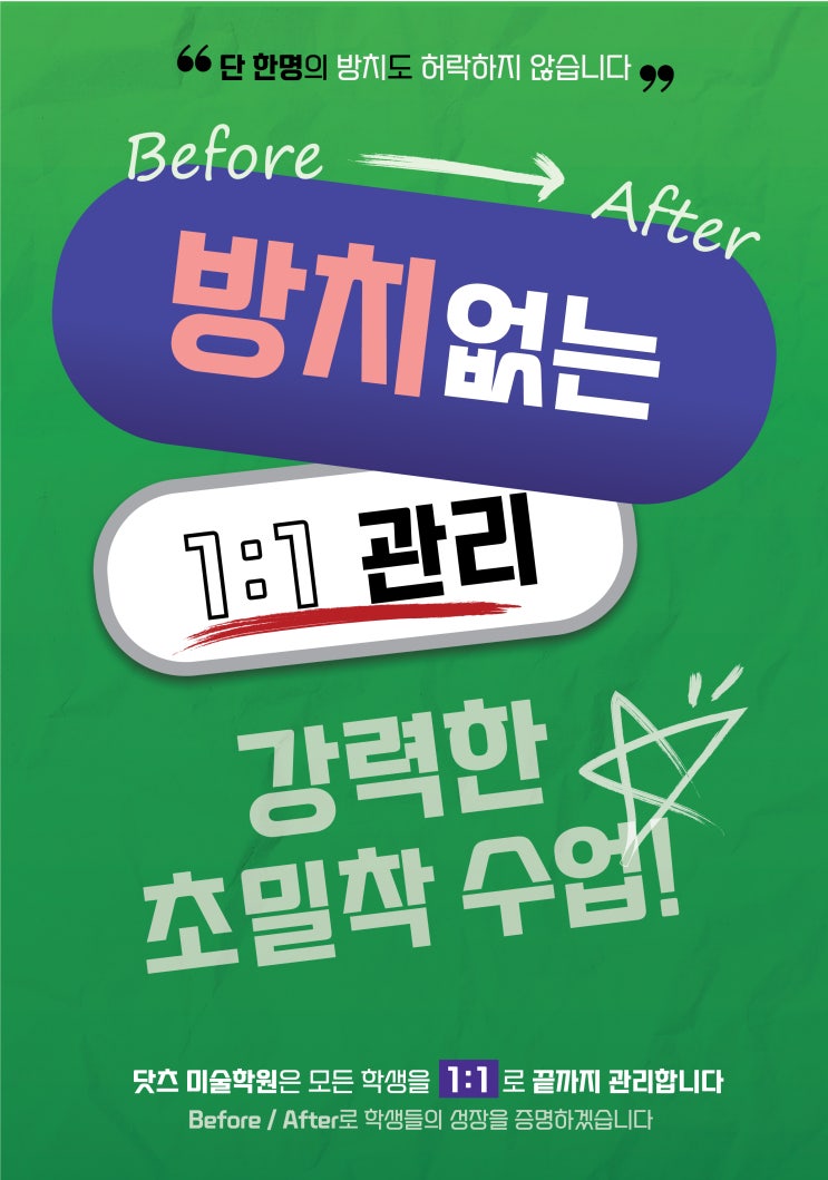 안녕하세요. 닷츠입니다! 오늘은 합격생 2명의 입시 초반 그림과 후반 그림을 비교하여 얼마만큼 짧은 시간안에 어떤식으로 그림이 성장했는지 보여드리려고 합니다! 아래 사진들을 가져와 봤는데 보시죠! ■ 이0린 학생작 [ Before ] ↓ ↓ ↓ [ After ] 이 학생은 입시 준비 기간이 길지 않았습니다. 고2 후반에 입시를 시작했고, 처음에는 기초소양만 준비하던 친구였습니다. 그러다 고3이 되면서 기초디자인으로 방향을 전환했습니다. 전형도 바뀌고, 그림 방식도 완전히 달라지는 선택이었습니다. 특히 수채화는 6개월도 채 배우지 않은 상태였습니다. 보통이라면 “시간이 부족하다”는 말을 먼저 할 상황이었지만, 이 학생은 그 짧은 기간....... <img src="https://blogthumb.pstatic.net/MjAyNjAyMTlfNTIg/MDAxNzcxNDk1MjIwNDU1.LK5zjWhIb_frBtYLK2PZ_onDt4Os3vf-1KMThHEmG5Mg.A7i9ararfZY_euF5RR_7RkeL6-GHQrQRwOmBZU5kHXQg.JPEG/%B9%E6%C4%A1-%C6%F7%BD%BA%C5%CD2-1.jpg?type=s3" />