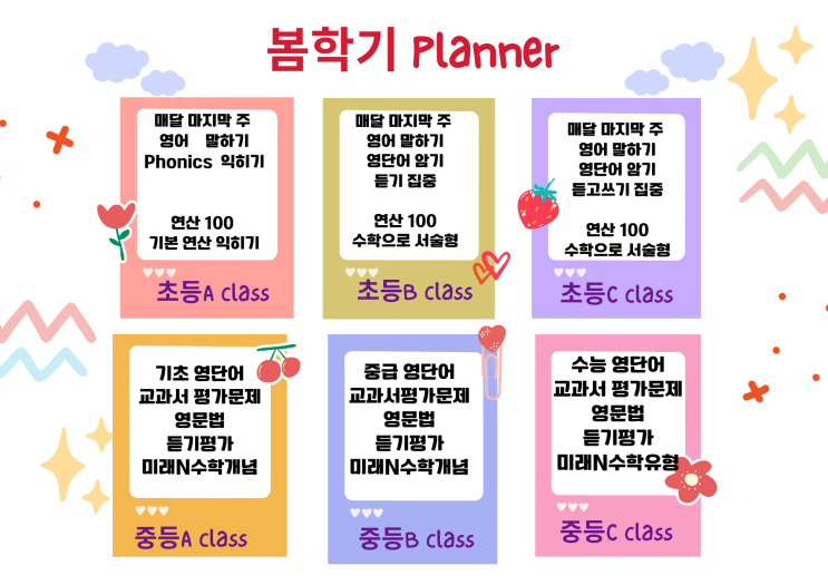 “웅동중 1학년 전교1등 하는 만수와 중간 하는 철수 책을 본다. 초등 3학년 때부터 공부한 만수는 이해가 빠르고 열심히 한다 . 초6학년 겨울방학때 학원에서 공부 시작한 철수는 이해는 빠른데 열심히 하지 않고 문제 푸는데 급하다. 초등때부터 이해하고 생각하며 무엇보다 계획을 잘 실천하는 공부가 중요하다. ” 초등때부터 계획을 잘 실천하는것 과 공부 습관이 중요하다. 계획표는 만들었는데 실천은 없고 공부는 한 것 같은데 기억은 없고 그동안 뭘했는지 모르겠고 사실 이런 문제는 아이의 의지 보다는 습관의 문제이다. 초등 3-4학년 시기 지금이 공부 습관을 잡을 수 있는 골드타임 이에요 계획표는 간단하고 지속 가능한 루틴이 더....... <img src="https://blogthumb.pstatic.net/MjAyNjAyMjRfNzIg/MDAxNzcxOTM5NTQyODg3.tQm48csgIwYXJ7RerHRNVGsou5VPpBGsPYIlq3Oq_Ycg.ojYQlaWqdjG4rrTsws93I-tWVMLufVQfqNye0omcGcgg.PNG/Brown_and_Green_Illustrative_Study_Schedule_%281%29.png?type=s3" />