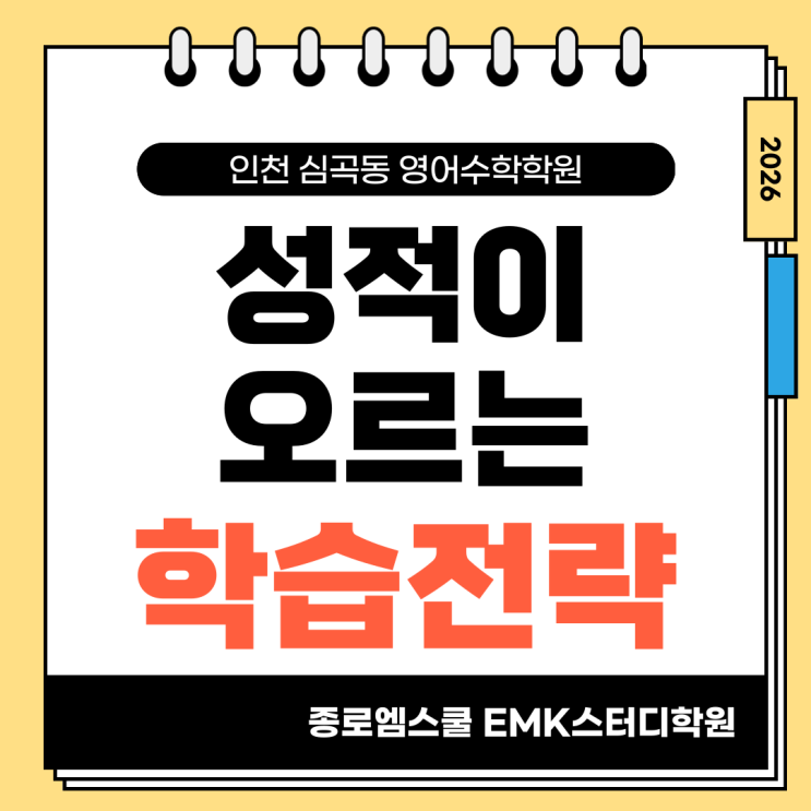 심곡동 영어수학학원 종로엠스쿨 EMK스터디학원 성적이 오르는 학생들의 공통점 5가지 | 공부 습관이 성적을 결정합니다 “같은 시간 공부하는데 왜 누구는 성적이 오르고, 누구는 그대로일까요?” 실제 현장에서 보면 성적이 오르는 학생들의 공통점은 분명히 존재합니다. 단순히 머리가 좋아서가 아니라, 공부 습관과 자기주도학습 능력의 차이에서 결과가 갈립니다. 오늘은 심곡동 영어수학학원 EMK스터디학원에서 성적이 오르는 학생들의 공통점을 알려드리겠습니다. 1️⃣ 공부 시간을 ‘기록’한다. 성적이 오르는 학생들은 막연하게 공부하지 않습니다. 공부 시작 시간, 종료 시간, 과목별 학습량을 기록합니다. ✔ 오늘 무엇을 얼마....... <img src="https://blogthumb.pstatic.net/MjAyNjAyMjFfMzgg/MDAxNzcxNjY1MzQzMzAx.OsAYiGEzybxOTT3og7pJZsQd9uY-iTN0ONH0BZksmigg.rAg-jUEIFxvLdovNBvJrtZabJ4NisbndL7Wd5SNmFK0g.PNG/001.png?type=s3" />