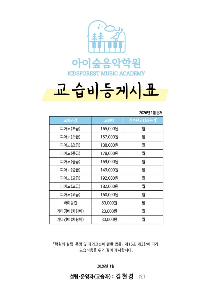 26년 교습비 안내