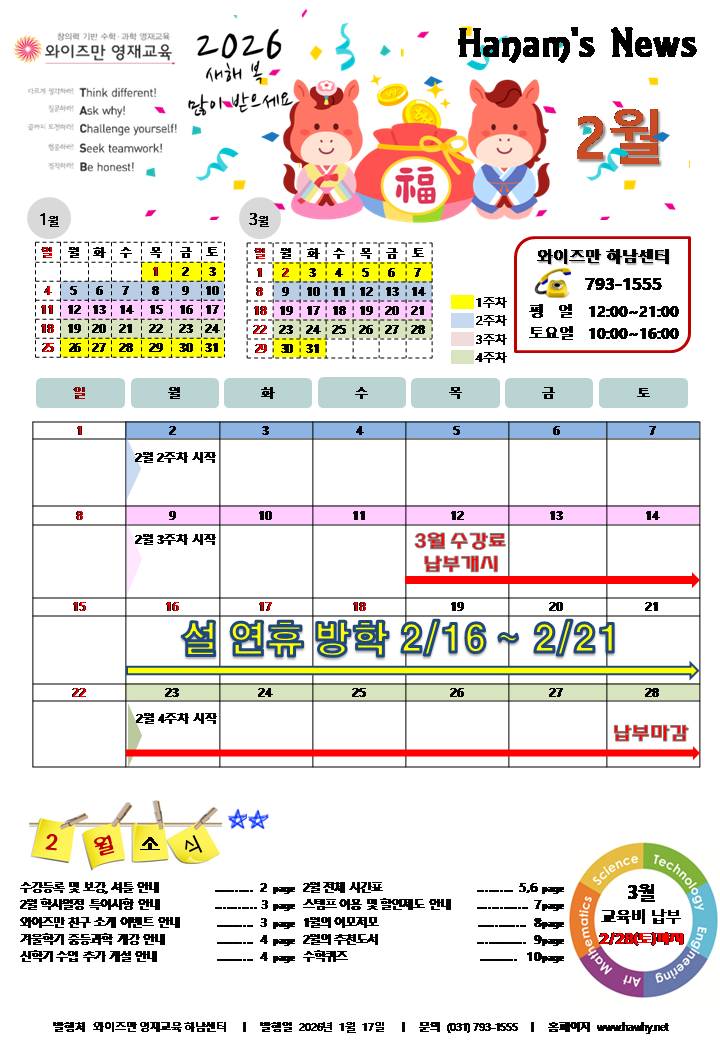 [와이즈만 하남] 2월 소식지 / 와이즈만 친구 소개 이벤트, 겨울 방학 특강 일정 안내