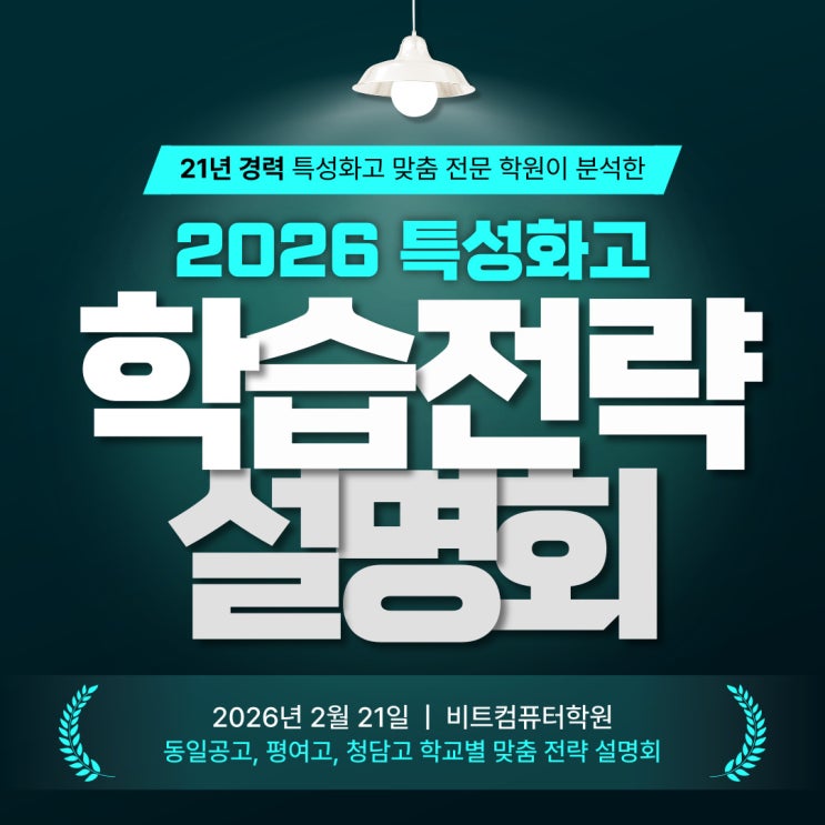 안녕하세요. 평택특성화고전문학원 비트컴퓨터학원&비트학원입니다. 곧 특성화고에 입학하는 예비 고1 학생 & 학부모님 여러분 새로운 시작을 맞이하는 설렘도 크지만, "특성화고는 어떻게 공부하지?" "특성화고 준비는 무엇을 해야지?" 이런 걱정도 우려되지 않으신가요? / 평택 비트컴퓨터학원&비트학원에서 특성화고 진학 예정 학생 및 학부모님을 위한 특성화고 학교별 학습전략 설명회를 개최합니다 특성화고는 일반고와 교육 과정, 평가 방식이 다르기 때문에 입학 전 충분한 이해와 준비가 매우 중요한데요! 특성화고 학교별 학습전략 설명회에서는 다양한 내용으로 설명회 진행함에 있습니다....... <img src="https://blogthumb.pstatic.net/MjAyNjAxMjlfMTcg/MDAxNzY5NjgzNTcwMTUz.Kcu30WLjTF9o1T0nJwYtvrBZof8YUeMA3YdZQqkLgiYg.ToP3Lv-0dos9cI49_uGrwakOLwIIWZyu31k_zUAq-eIg.JPEG/001.jpg?type=s3" />