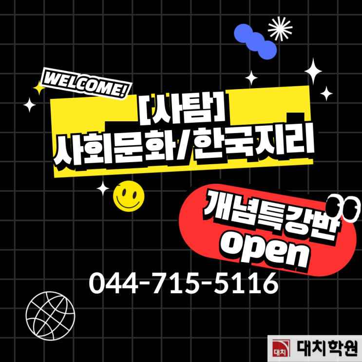 [대치학원 새롬캠퍼스] 사탐 대비반 OPEN!:사회문화/한국지리 개념 특강반