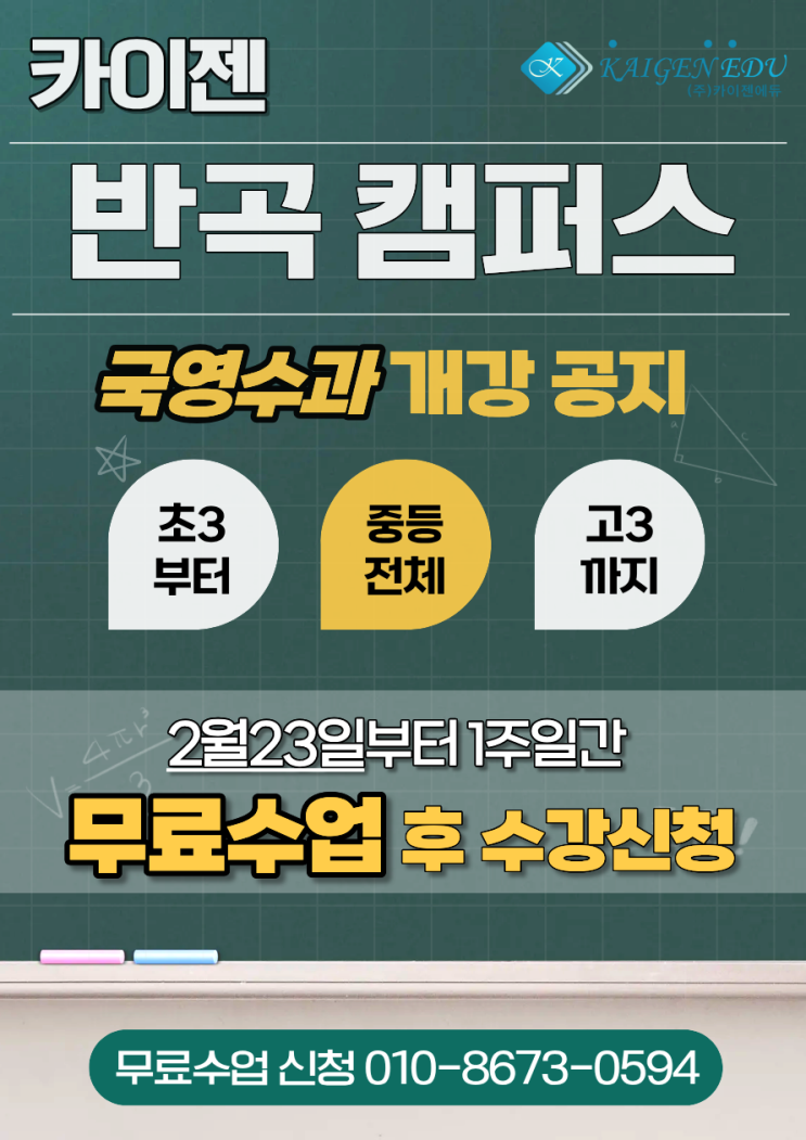 카이젠 반곡 캠퍼스 신학기 개강 무료수업!!
