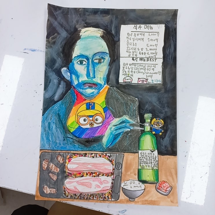 지난 시간, 영트라움 친구들은 엄청난 작품을 그려내며 천재적인 실력을 보여준 스페인에서의 피카소의 유년 시절부터 친구를 잃고, 가난 까지 힘든 시기를 보냈던 청색 시대의 작품들 따사로운 색감을 자랑하는 장밋빛 시대 작품들과 피카소가 만났던 여러 연인들과 큐비즘 작품들, 피카소의 아주아주 긴 이름 피카소의 유명한 대표작들과 도자기 작품 한국의 6.25 전쟁을 표현한 작품도 감상해본 뒤, 아트반 언니 오빠들은 피카소의 청색 시대 작품에 나만의 이야기를 담아 재미나게 재창조 해보고 키즈반 친구들은 여러 시점의 모습이 합쳐진 큐비즘을 이해하고 주사위를 던져 다양한 각도의....... <img src="https://blogthumb.pstatic.net/MjAyNjA0MDJfMTU3/MDAxNzc1MTA3MDgyMjM0.dWn2X6AlumE6UkU_1cJibKDV-1MRXGUqCVoFn72_x8Yg.sogy7AKiqjlaXo_qWjzFsRMWxYV8kucnc986tPd5wXsg.JPEG/SNOW_20250306_183729_768.jpg?type=s3" />