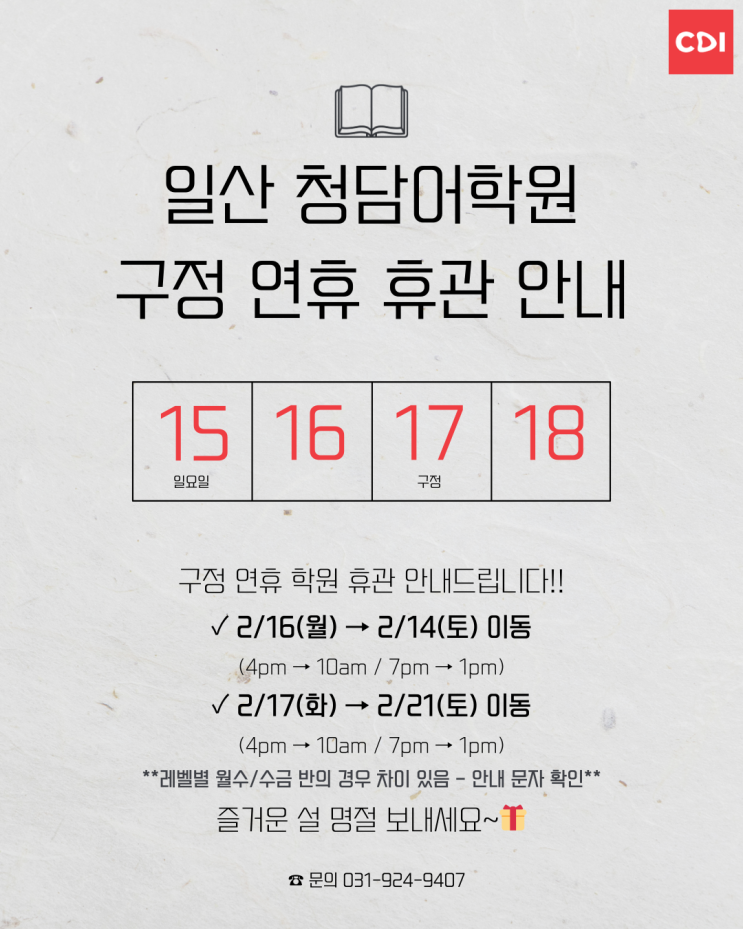 [청담어학원 일산직영캠퍼스]구정 연휴 휴관 안내