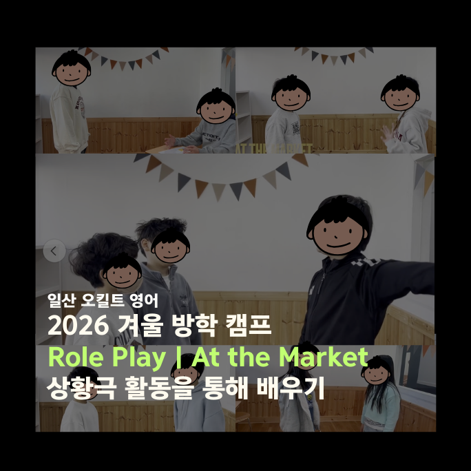 해외에서도 진행되는 프로그램 ‘At the Market’ 상황극(Role Play) 활동을 진행했습니다. 오킬트 해외 영어캠프에서도 사용하고 있는 프로그램중 하나입니다. https://blog.naver.com/okilt_jehee0408/224028450862 수업 목표 아이들은 손님과 판매자로 역할을 나누어 시장 상황을 영어로 표현해보았습니다. ✔ 물건을 요청하는 표현 익히기 ✔ 가격 묻기 ✔ 기본적인 대화 흐름 말하기 “Can I have two carrots?” “How much is this?” “It’s five dollars.” “Here you are.” “Thank you.” 수업 시간에 배운 표현을 실제 상황처럼 말해보며 자연스럽게 문장을 연결했습니다. 영어는 문제집 속 문장이 아니라 상황 속 대화입니다. 오....... <img src="https://blogthumb.pstatic.net/MjAyNjAyMTFfNTEg/MDAxNzcwNzk1NzA4ODg1.KagGowXQC_iYZGEUYYTdxONzfYyul2zeH3Mb6Rkk3x0g.Da_ylUhd2SqeYDsy2wqnGht8z5O-VxXRRcuxvAY2xRQg.PNG/%C4%B6%B8%AE%C6%F7%B4%CF%BE%C6_%BE%D6%B8%AE%C1%B6%B3%AA%BF%A1%BC%AD_%B8%B8%B3%AA%B4%C2_%C1%F8%C2%A5_%BF%B5%BE%EE_%C4%B7%C7%C1-3.png?type=s3" />