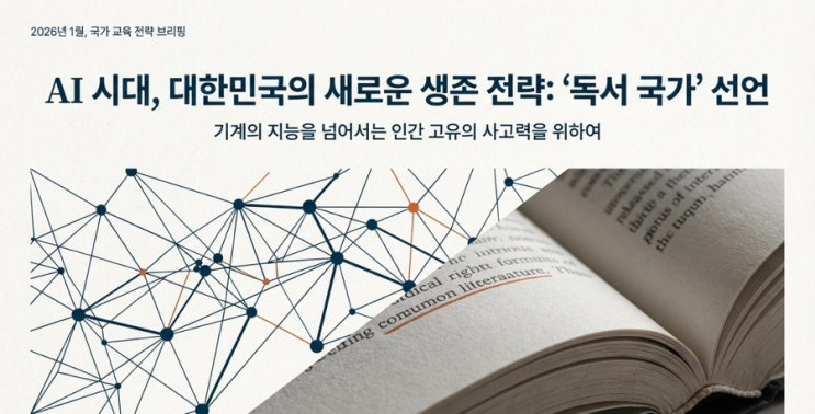 안녕하세요? 오늘은 교육계에서 큰 화제가 되고 있는 ‘독서 국가 선포식’ 소식을 정리해 보려 합니다. 현장에서 아이들을 만나는 비욘드잉글리쉬 인창초영어학원 입장에서도 이 흐름은 그냥 지나칠 수 없는 변화입니다. 대한민국은 세계 3대 AI 강국을 목표로 하고 있지만, 학생들의 비판적 읽기와 판단 능력은 OECD 최하위 수준이라는 경고가 계속 나오고 있습니다. 그래서 정부와 교육계는 해답을 다시 ‘독서’ 에서 찾기 시작했습니다. 단순한 캠페인이 아니라, 국가 전략 차원의 프로젝트라는 점에서 의미가 큽니다. ⸻ 1. AI 시대에 다시 ‘책’이 강조되는 이유 “AI 시대인데 왜 독서일까?”라는 질문을 많이 하십니다. 하지만 전문가....... <img src="https://blogthumb.pstatic.net/MjAyNjAxMzBfOTEg/MDAxNzY5Nzc1ODM2NzY2.VhFLdZpgW58bsOoHqzbf7DzrYkemA7MECfNFdFkHxogg.QY-cZs3lNB08k2fz_DuLjmh4q2arcBGELrhaNoNeVQ4g.JPEG/IMG%A3%DF7242.jpg?type=s3" />